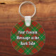 Klan Bruce vapensköld-bricka omgiven av ett band och ett låsbeslag över jaktartans bakgrund. Anpassningsbar på båda sidor.