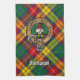 Buchanan-vapensköld-bricka omgiven av ett band och ett låsbeslag över klans tartanbakgrund. Anpassningsbar.