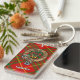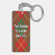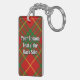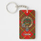 Klan Cameron vapensköld-bricka omgiven av ett band och ett låsbeslag över tartanbakgrunden. Anpassningsbar på båda sidor.
