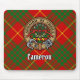 Klan Cameron vapensköld-bricka omgiven av ett band och ett låsbeslag över tartanbakgrunden. Anpassningsbar.