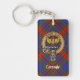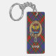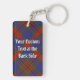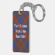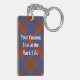 Klan Carnegie vapensköld-bricka omgiven av ett band och ett låsbeslag över tartanbakgrunden. Anpassningsbar på båda sidor.