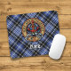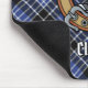 Klan Clark vapensköld-bricka omgiven av ett band och ett låsbeslag över tartanbakgrunden. Anpassningsbar.