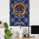 Klan Clark vapensköld-bricka omgiven av ett band och ett låsbeslag över tartanbakgrunden. Anpassningsbar.