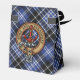 Klan Clark vapensköld-bricka omgiven av ett band och ett låsbeslag över tartanbakgrunden. Anpassningsbar och monogram.