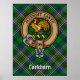 Klan Cockburn-vapensköld-bricka omgiven av ett band och ett låsbeslag över tartanbakgrunden. Anpassningsbar.