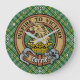 Klan Currie lejon vapensköld-bricka omgiven av ett band och ett låsbeslag över tartanbakgrunden. Anpassningsbar.