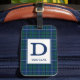 "Luggage tag" med Klan Douglas tartan, daterad till 1819. Traditionell skotsk präglade mönster i ljusa, moderna nyanser av marinblått och skogarnas grönt med ljusblå, svarta och vita högdagrar. Anpassa med ditt initiala och efternamn på en lätt skylt för färgad så att det blir lätt att läsa.