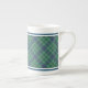 Bone china mugg med Duncan-familjen klan tartan mönster. Den traditionella vintagen Scottish plaid från 1 880 i ljust grönt, blå och svart, med röd och vit accent.