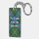 Klan Ferguson vapensköld- bricka omgiven av ett band och ett låsbeslag över tartanbakgrunden. Anpassningsbar på båda sidor.