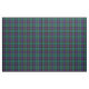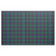Fabric in the family tartan for Klan Forsyth, en traditionell skotsk plaid mönster från 1795 i royal blue, black, and forest grönt, med ljusa gulter och röda accents. Mönster upprepas var fjärde tum. Speciellare order mindre eller större via https://plaidwerx.com/contact.htm