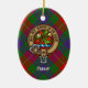 Klan Fraser vapensköld-märke omgivet av ett band och ett låsbeslag över tartanbakgrunden. Anpassningsbar på båda sidor.