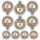 Klan Gunn vapensköld-bricka omgiven av ett band och ett låsbeslag.