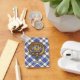 Klan Hannay vapensköld-bricka omgiven av ett band och ett låsbeslag över tartanbakgrunden. Anpassningsbar på båda sidor.