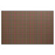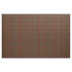 Fabric in the family tartan for Klan Inches, en traditionell skotsk plaid mönster daterad till 1920 i brunt och starkt rött, med gult, lila, royal blue och svart accents. Mönster upprepas var fjärde tum. Speciellare order mindre eller större via https://plaidwerx.com/contact.htm