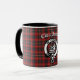 Mugg har Scottish Klan Innes-vapensköld-märke och anpassade-text på tartanbakgrund