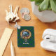 Klan Kennedy vapensköld-bricka omgiven av ett band och ett låsbeslag över tartanbakgrunden. Anpassningsbar på båda sidor.