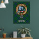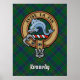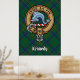 Klan Kennedy vapensköld-bricka omgiven av ett band och ett låsbeslag över tartanbakgrunden. Anpassningsbar.