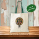 Klan Leslie vapensköld-bricka omgiven av ett band och ett låsbeslag över jaktartans bakgrund. Anpassningsbar på båda sidor.