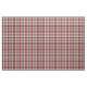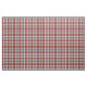 Fabric med Klan MacAlister Dress tartan, en traditionell skotsk präst mönster i ljust rött, skogsvit och gråvit grönt med himlar blå och gult. Mönster upprepas var fjärde tum. Speciellare order större via https://plaidwerx.com/contact.htm