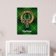Klan MacArthur vapensköld-bricka omgiven av ett band och ett låsbeslag över tartanbakgrunden. Anpassningsbar.