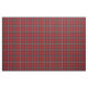 Fabric in the family tartan for Klan MacClure, en traditionell skotsk plaid mönster från 1999 i rött, grönt och blått, med svarta och vita accenter. Mönster upprepas var fjärde tum. Speciellare order mindre eller större via https://plaidwerx.com/contact.htm