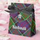 Klan MacDonald av Clanranald vapensköld-bricka omgiven av ett band och ett låsbeslag över tartanbakgrunden. Anpassningsbar och monogram.