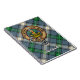 Klan MacDowall vapensköld-bricka omgiven av ett band och ett låsbeslag över tartanbakgrunden. Anpassningsbar.