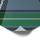 Klan MacDowall vapensköld-bricka omgiven av ett band och ett låsbeslag över tartanbakgrunden. Anpassningsbar.