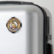 Klan MacFarlane-vapensköld-bricka omgiven av ett band och ett låsbeslag över svart och vit tartanbakgrund. Anpassningsbar.