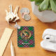 Klan MacFarlane-vapensköld-bricka omgiven av ett band och ett låsbeslag över den moderna jaktartans bakgrund. Anpassningsbar på båda sidor.