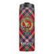 Klan MacFarlane-vapensköld-bricka omgiven av ett band och ett låsbeslag över tartanbakgrunden. Anpassningsbar.