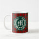 Kaffe mugg med tartan för Klan MacGregor och dess septer, inklusive Dochart och Peterkin, en populär traditionell skotsk plaid i klarrött, med mörk grönt och vita accenter. Vintage mönster från 1884. Båda sidor av mugg har en rund jägare-grönt med lagrar och din monogramssymbol i ett gammalt engelskt teckensnitt.
