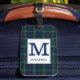 "Luggage tag" med Klan Mackenzie tartan, daterad 1778. Traditionell skotsk präglade mönster i skuggor av skogens grönt och blått med svarta, röda och vita högdagrar. Anpassa med ditt initiala och efternamn på en lätt skylt för färgad så att det blir lätt att läsa.