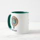 Klan MacKenzie-vapensköld-bricka omgiven av ett band och ett låsbeslag över tartanbakgrunden. Anpassningsbar på båda sidor.