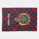 Klan MacLachlan-vapensköld-bricka omgiven av ett band och ett låsbeslag över tartanbakgrunden. Anpassningsbar.