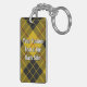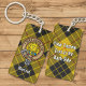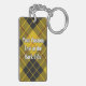Klan MacLeod of Lewis vapensköld-bricka omgiven av ett band och ett låsbeslag över tartanbakgrunden. Anpassningsbar på båda sidor.