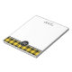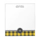 Anteckningsruta för personlig med fast gräns och monogram. Traditionell skotsk präglade mönster i ljust gult och svart, med röda accenter.
