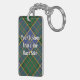 Klan MacMillan-vapensköldens bricka omgiven av ett band och ett låsbeslag över jaktartans bakgrund. Anpassningsbar på båda sidor.
