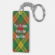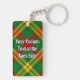 Klan MacMillan-vapensköldens bricka omgiven av ett band och ett låsbeslag över tartanbakgrunden. Anpassningsbar på båda sidor.
