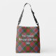 Klan MacPherson-vapensköld-bricka omgiven av ett band och ett låsbeslag över tartanbakgrunden. Anpassningsbar på båda sidor.