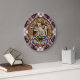 Klan MacPherson-vapensköld-bricka omgiven av ett band och ett låsbeslag över jaktartans bakgrund. Anpassningsbar.