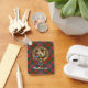 Klan MacPherson-vapensköld-bricka omgiven av ett band och ett låsbeslag över tartanbakgrunden. Anpassningsbar på båda sidor.