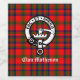 Den skotska Klan Matheson red tartan plaid mönster med klan vapensköld bricka och anpassade text överlägg