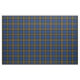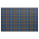 Fabric in the family tartan for Klan Minnock, en traditionell skotsk plaid mönster från 2009 i royal blue, grönt och black with bright red and gult accents. Mönster upprepar var fjärde tum. Speciell order mindre eller större via https://plaidwerx.com/contact.htm
