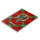 Klan Morrison vapensköld-bricka omgiven av ett band och ett låsbeslag över röd tartanbakgrund. Anpassningsbar.
