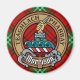 Klan Morrison vapensköld-bricka omgiven av ett band och ett låsbeslag över röd tartanbakgrund. Anpassningsbar.
