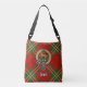 Klan Scott vapensköld-bricka omgiven av ett band och ett låsbeslag över röd tartanbakgrund. Anpassningsbar på båda sidor.