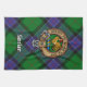 Klan Sinclair vapensköld-bricka omgiven av ett band och ett låsbeslag över jaktartans bakgrund. Anpassningsbar.