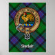 Klan Sinclair vapensköld-bricka omgiven av ett band och ett låsbeslag över jaktartans bakgrund. Anpassningsbar.