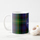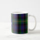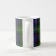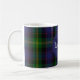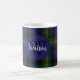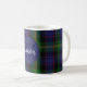 Monogrammat kaffe mugg, framställt i en traditionell och färglös skotsk klan Watson tartan plaid mönster. En blå cirkel har ett monogram och familjen namn. Anpassa monogrammet och namn till kostym efter dina behov.